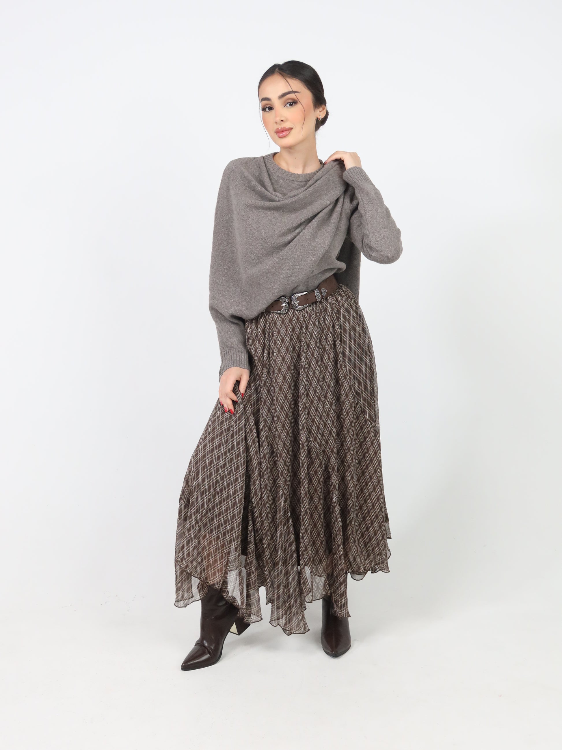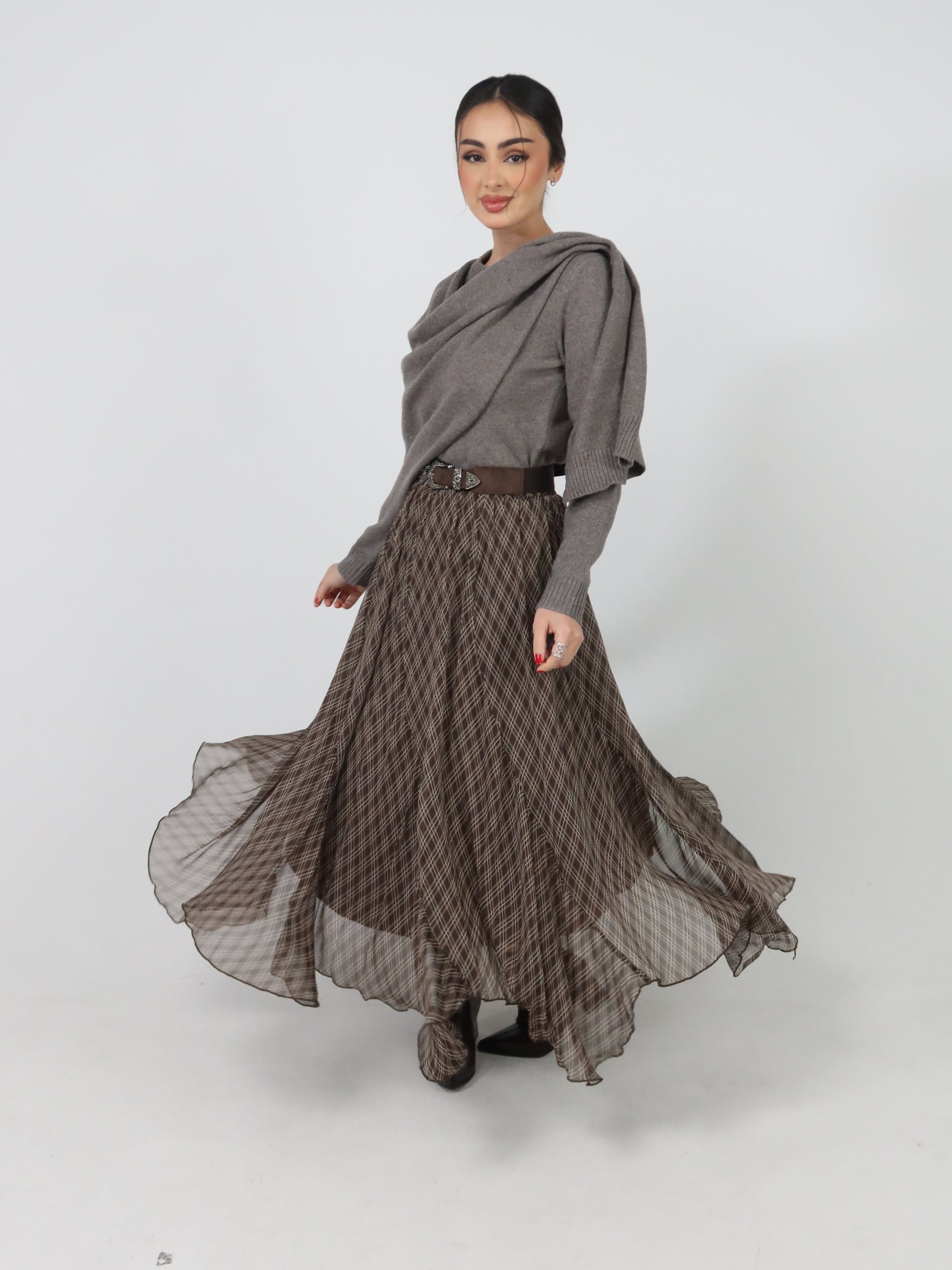 Brown plaid skirt- تنوره فقط
